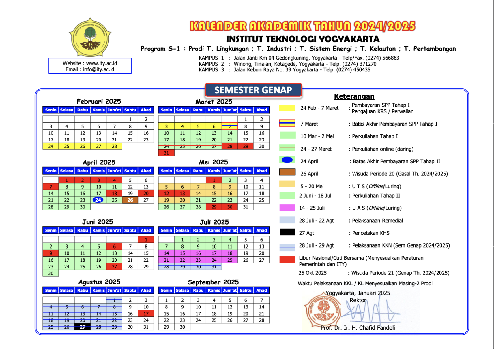 Kalender akademik semester genap tahun ajaran 2024/2025.