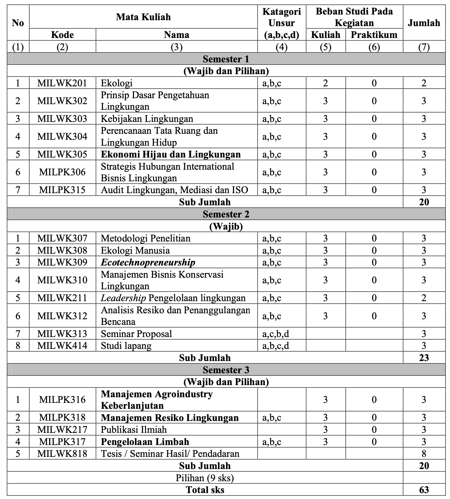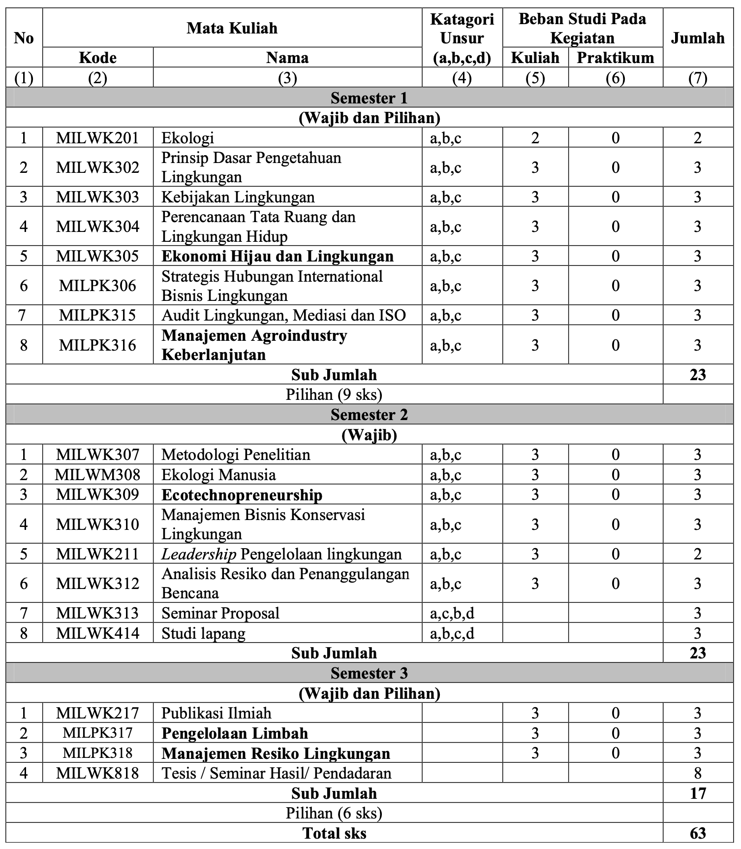 Program Magister Ilmu Lingkungan mempunyai empat bidang konsentrasi yaitu :